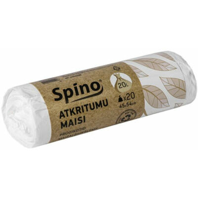 Balti, viegli caurspīdīgi, atkritumu maisi SPINO. Pateicoties savai neuzkrītošajai krāsai tie ir īpaši piemēroti lietošanai birojos, kabinetos un telpās, kur papīrgrozi ir viegli pamanāmi, taču tiem nebūtu vēlams izcelties uz kopējā interjera fona. Rullī 20 gabali, ar perforāciju, viegli noplēšami. Izgatavoti no augsta blīvuma polietilēna (HDPE). Biezums 9 mikroni.